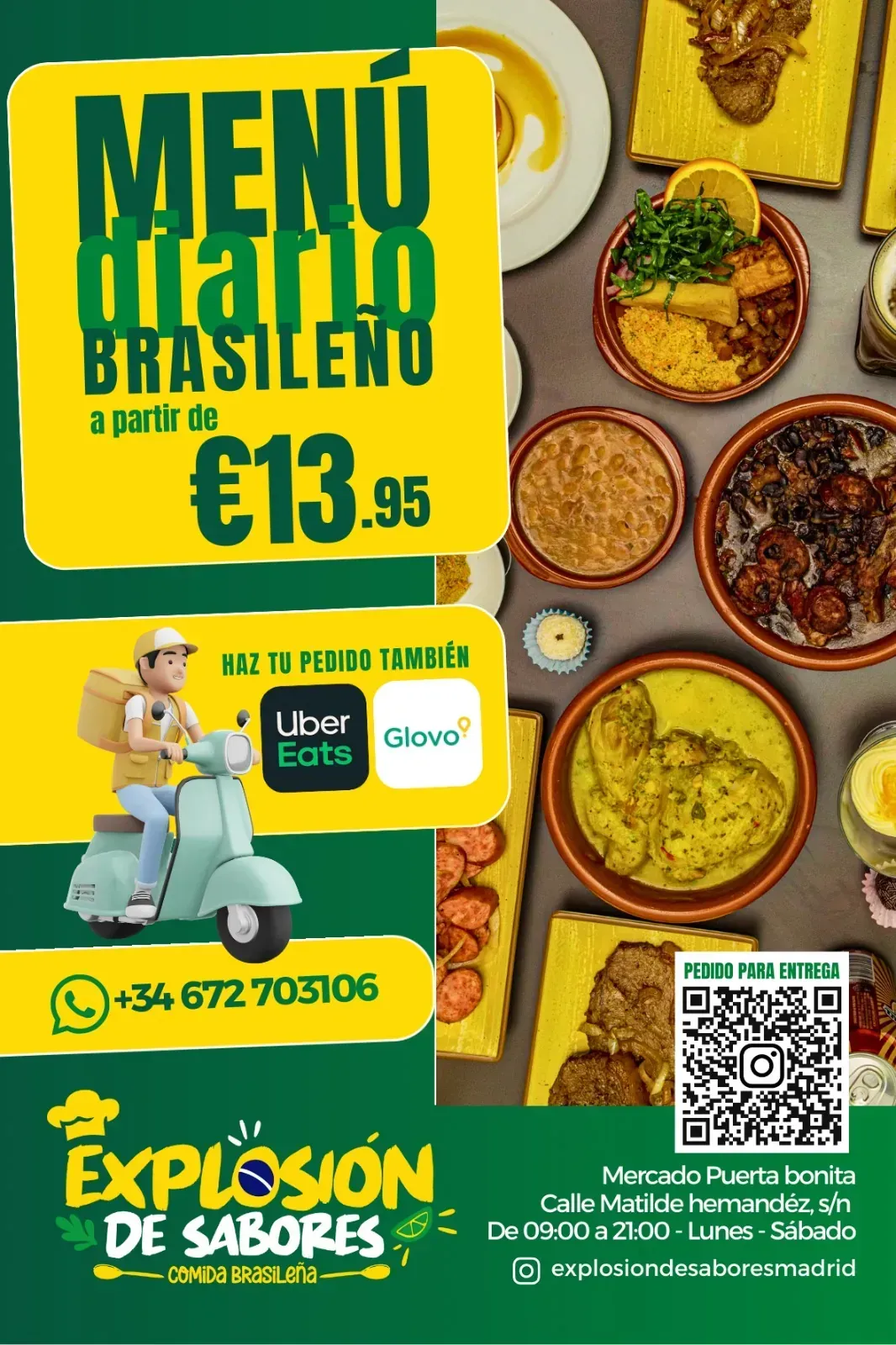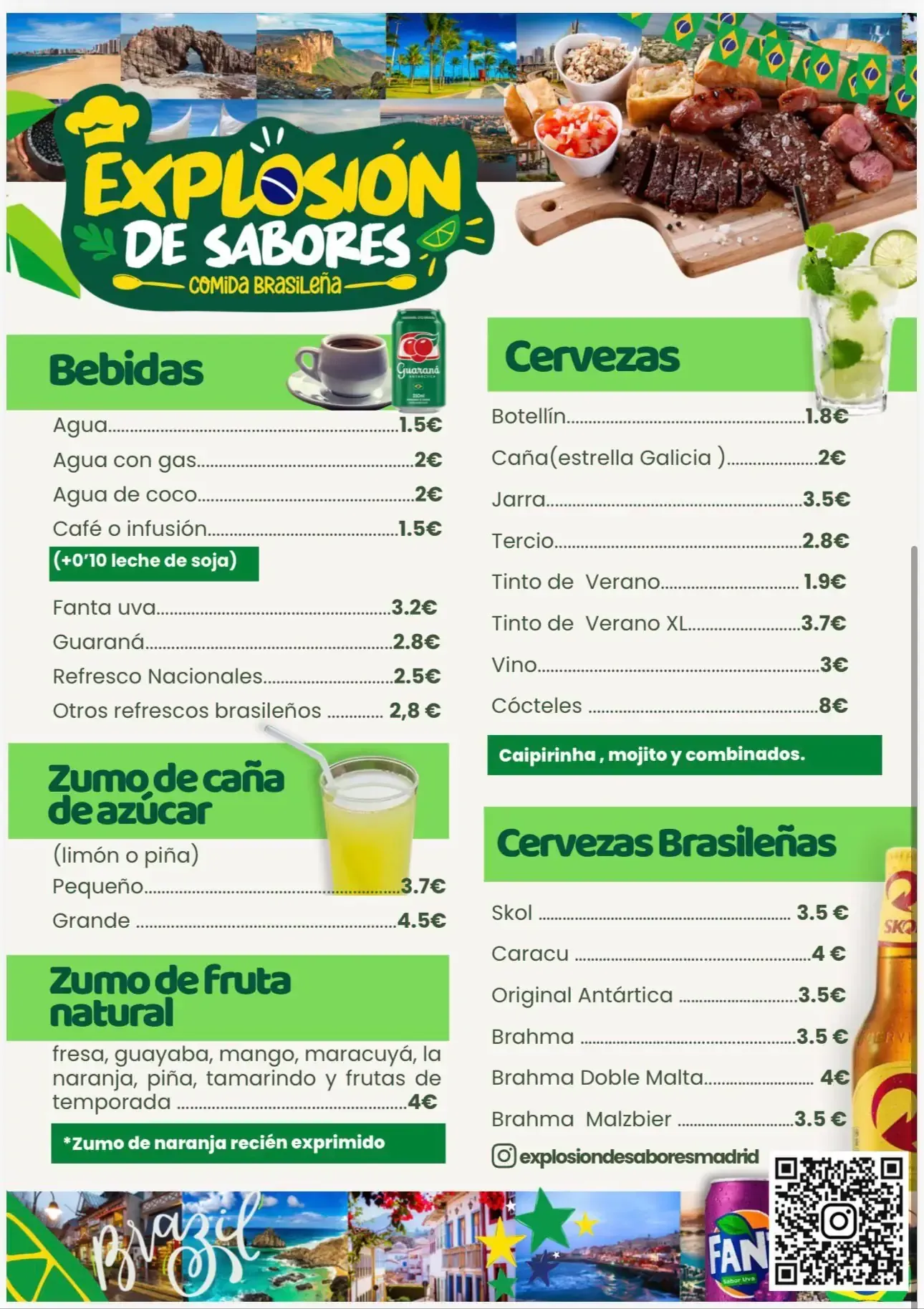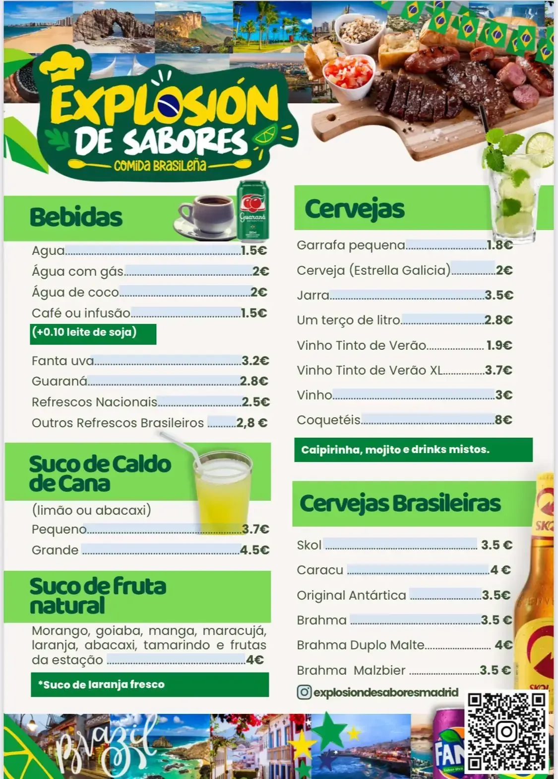 Nuestra carta está pensada para ofrecerte platos tradicionales brasileños, elaborados de forma casera y adaptados al día a día. Apostamos por una propuesta sencilla pero llena de sabor, donde cada plato tiene su protagonismo.